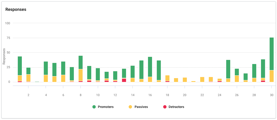 Note: By default, and until otherwise stated, NPS data from all your campaigns (for the default date range of the last 30 days) is used to calculate the NPS score.